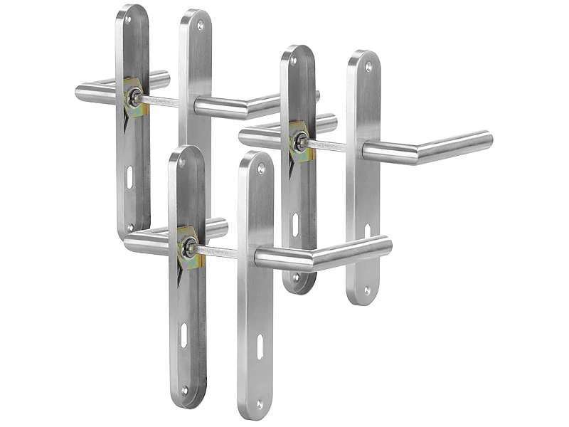 - 3er-Set Türbeschläge inklusive je 2 Türklinken, 2 Langschild-Rosetten, Vierkant-Stift, Montage-Material und deutscher Anleitung – Türbeschlagset – Außerdem relevant oder passend zu: WC, Tür, Haustür, Drücker, turbeschlag