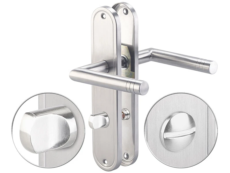 - Der Set beinhaltet 2 Türklinken inklusive 2 Langschild-Rosetten, Riegel, Vierkant-Stift, Montage-Material und deutscher Anleitung – WC-Türklinken – Außerdem relevant oder passend zu: Schlösser, Türschloss