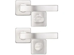 AGT Türbeschläge Badezimmer:2er-Set Edelstahl-Türbeschlag Bad & WC, 2 Klinken & Rosetten, Eckig