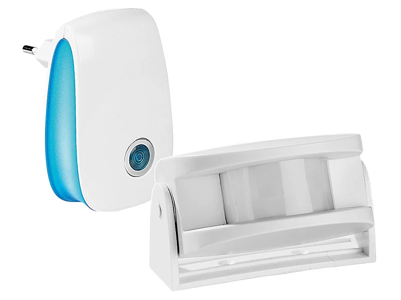 - Funkklingel-Set: Bewegungssensor zur festen Anbringung, die mobile Klingel stecken Sie in eine beliebige Steckdose