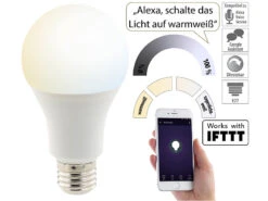 - Helligkeit (warmweiß): insgesamt 840 Lumen