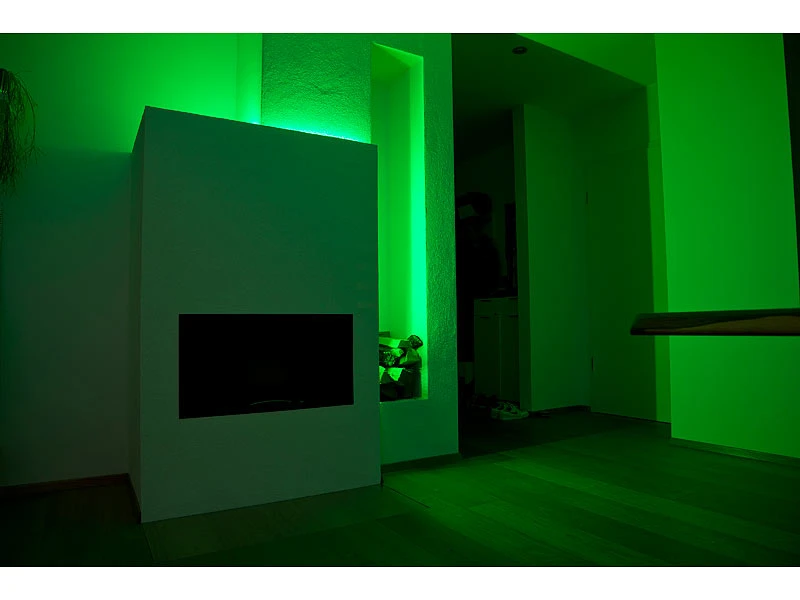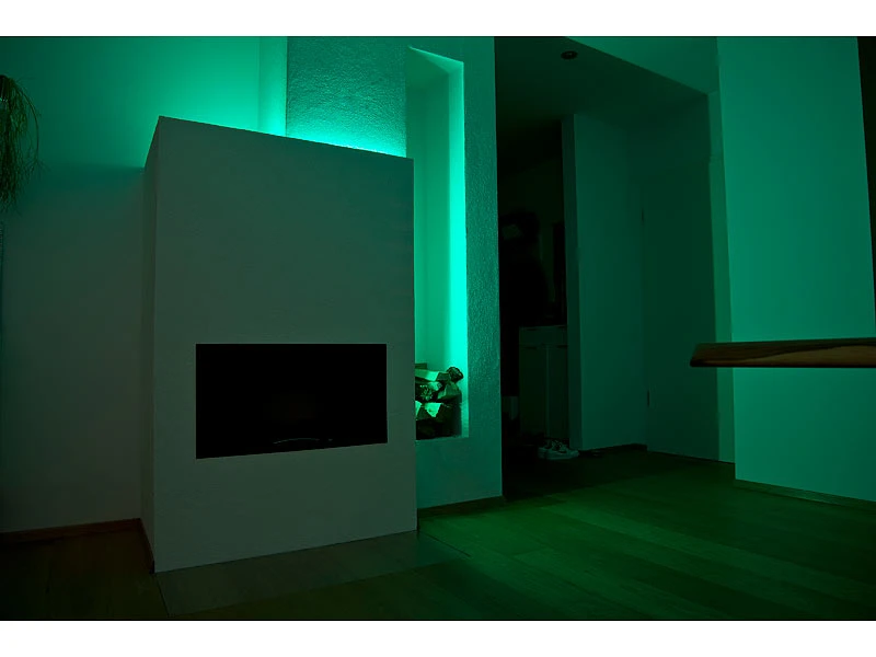 - Anpassbare Lichtfarbe: warmweiß (3000 K) oder RGB (rot, grün, blau für 16 Mio. Farbtöne)