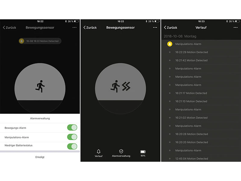 Beste Übersicht auch über mehrere Bewegungsmelder: Haben Sie mehrere Melder installiert, erkennen Sie, welcher von ihnen ausgelöst wurde. So greifen Sie rasch ein und informieren im Zweifelsfall Bekannte, Nachbarn oder die Polizei.