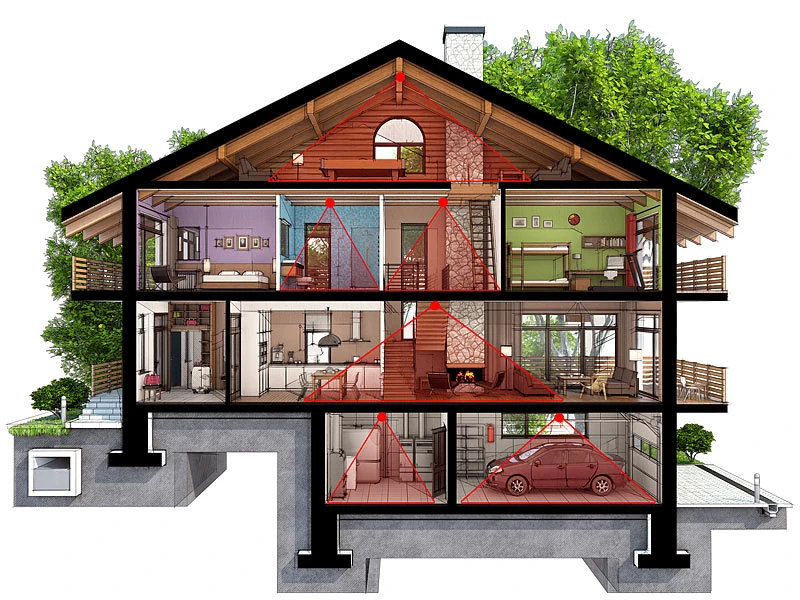 - PIR-Bewegungsmelder Erfassungswinkel: horizontal und vertikal je 120°, Reichweite: bis zu 10 m