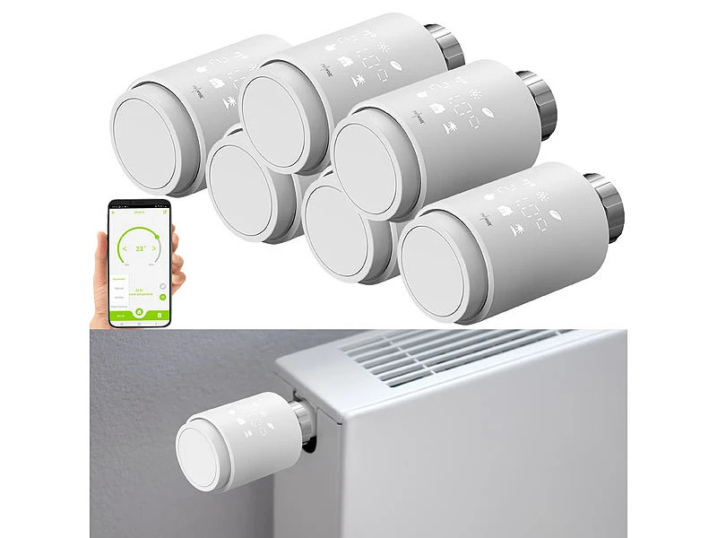 - 6 Heizkörper-Thermostat inklusive 36 Adaptern und deutscher Anleitung – Thermostatventile – Außerdem relevant oder passend zu: Handy, Smartes, Digitale, Digitales, Smarthome, Programmierbares, smarte Heizungsthermostate, Heizkörperthermostat Digital