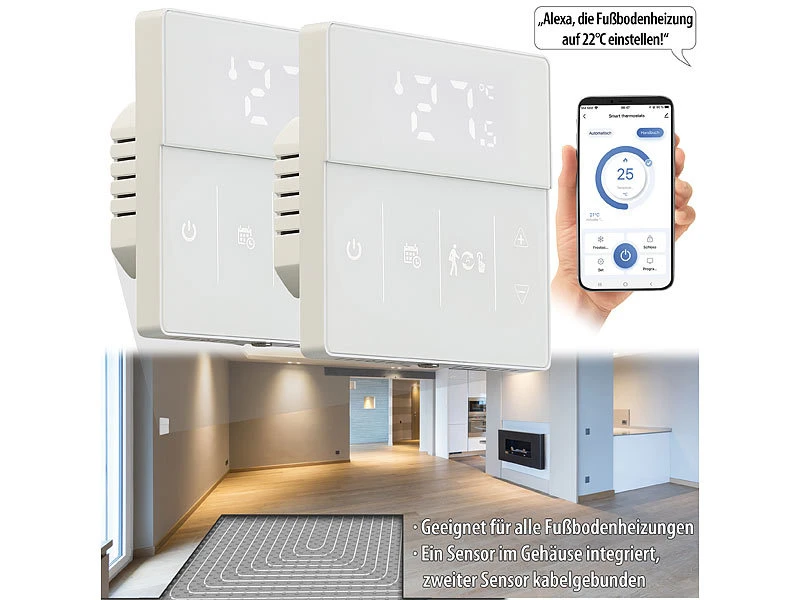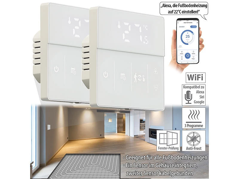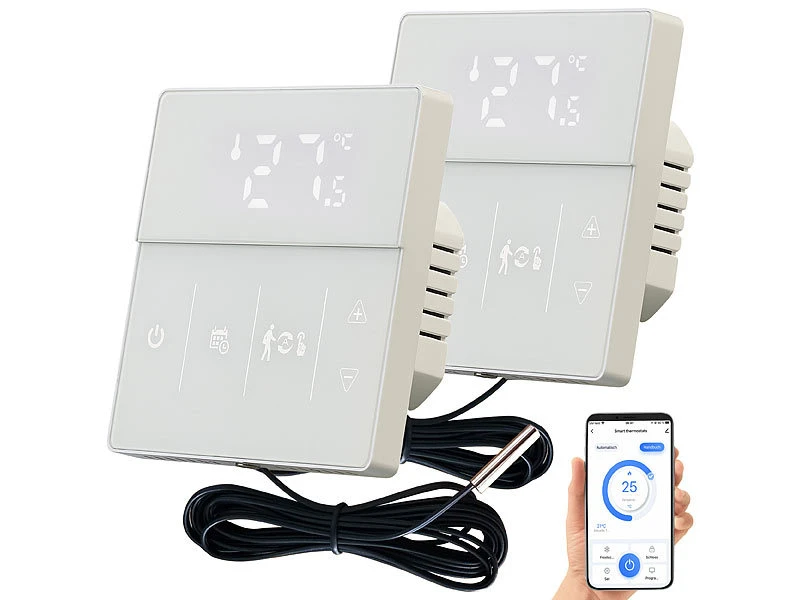 - 2 WLAN-Thermostate inklusive externem Sensor, Montagematerial und deutscher Anleitung – Heizung Raumthermostat – Außerdem relevant oder passend zu: Tablet, Programmierbare, Infrarotheizung