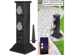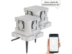 Royal Gardineer Steckdosenstein:4-fach-WLAN-Garten-Steckdose, App, Sprachbefehl, 16 A, 3.680 W, IP44