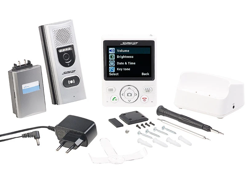 - Extras: automatische und manuelle Foto-Aufnahme während des Gesprächs, Uhrzeit und Datum, Außeneinheit kompatibel mit allen gängigen Türschließ-Mechanismen