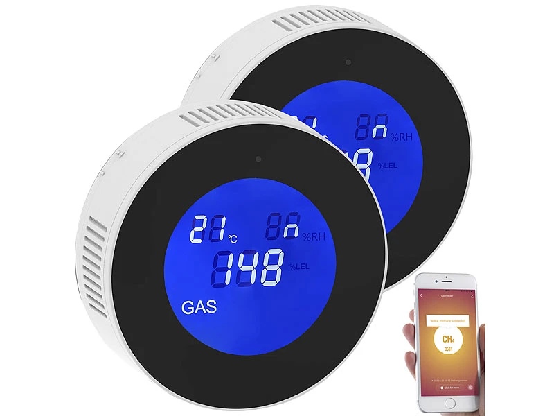 - 2er-Set WLAN-Multi-Gasmelder für haushaltsübliche Gase