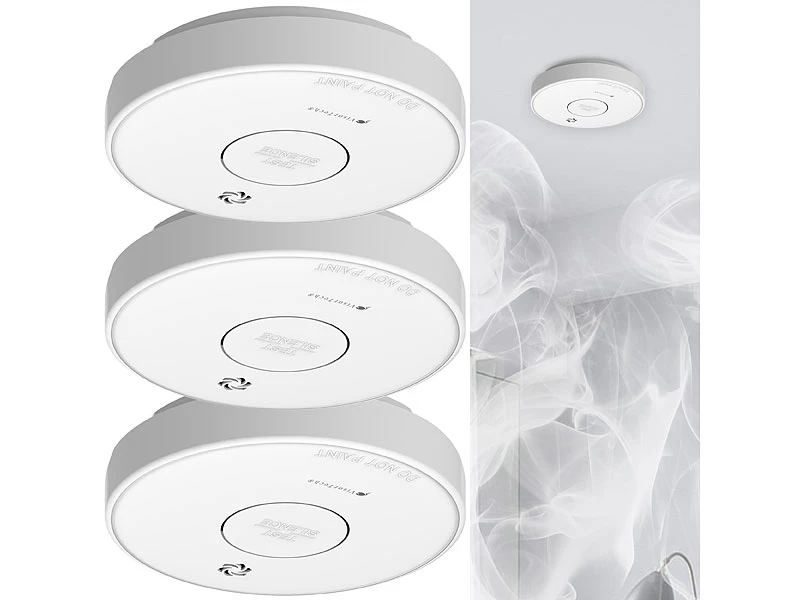 - 3er-Set Rauchwarnmelder RWM-470 inklusive je 2 Batterien, Montagematerial und deutscher Anleitung – Funkgesteuerter Rauchmelder – Außerdem relevant oder passend zu: Melder, vernetzt