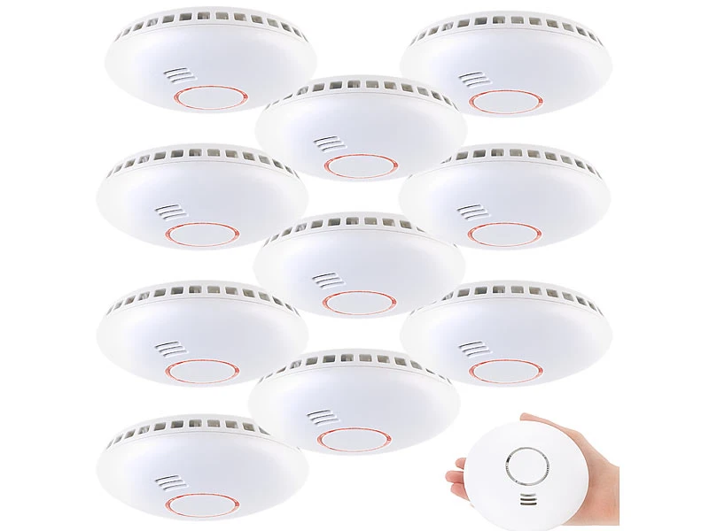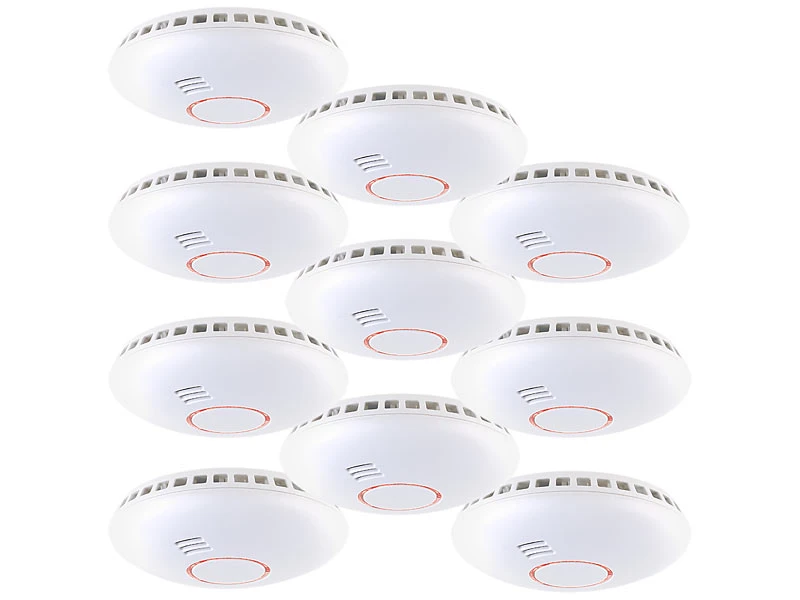 - 10er-Set Funk-Hitze- und Rauchwarnmelder inklusive Batterien, Montagezubehör und deutscher Anleitung – Funk Hitze und Rauchmelder – Außerdem relevant oder passend zu: Feuer, 460 f, Küche, Batterie, Vernetzte, Vernetzter, Alarmanlage