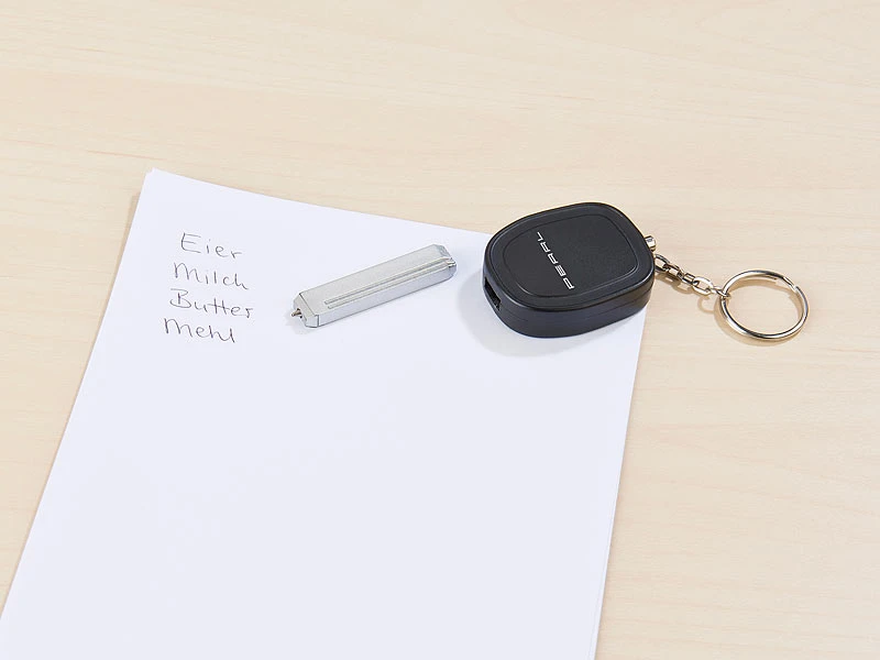 Mit integriertem Kuli für schnelle Notizen: Auch im Alltag ist Ihr Schlüssel-Alarm ein praktischer Helfer! Denn im Schlüsselbart verbirgt sich ein Mini-Kugelschreiber. So haben Sie immer einen Stift für Notizen parat.