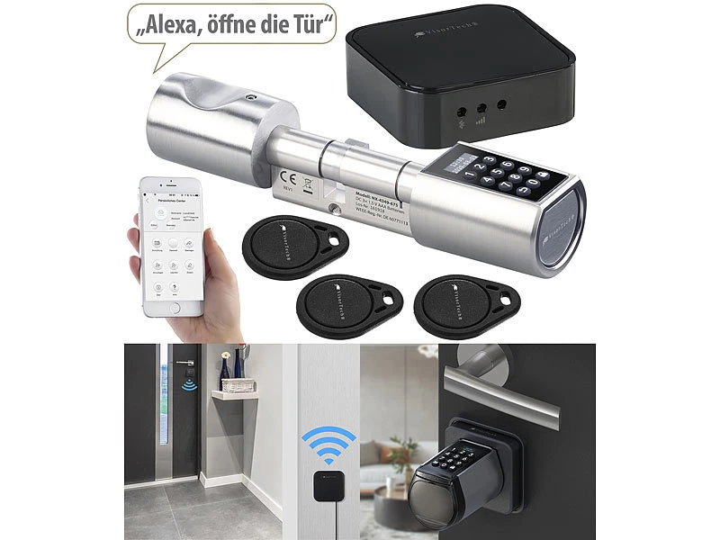 - Öffnen der Tür per Zahlencode oder App-Steuerung