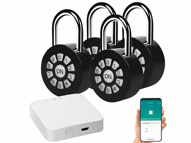 - Bedienung auch direkt am Vorhängeschloss per Zahlencode möglich